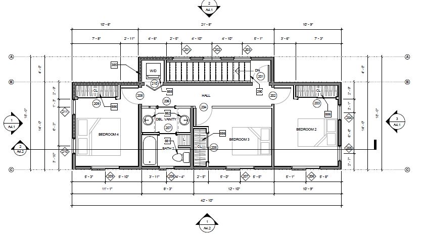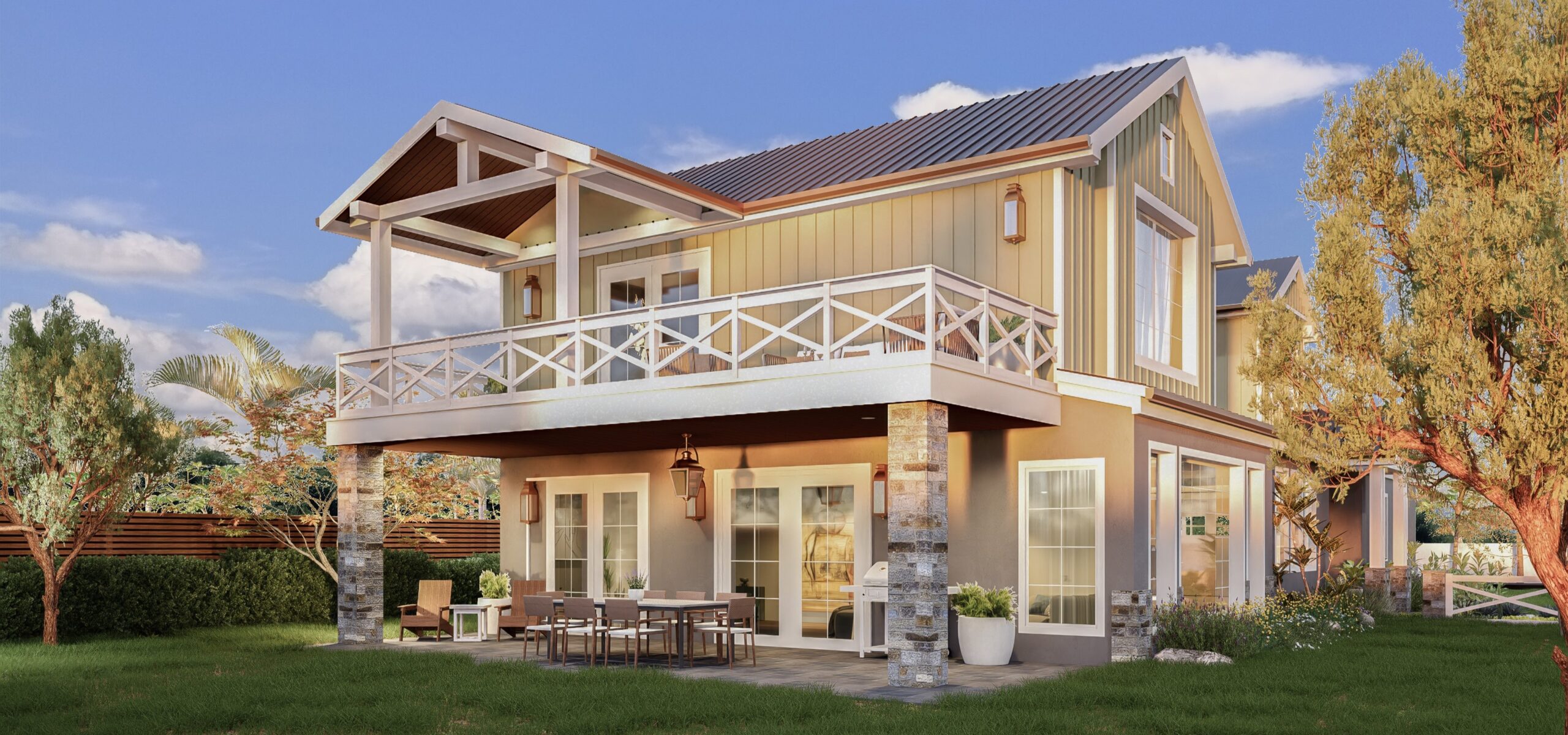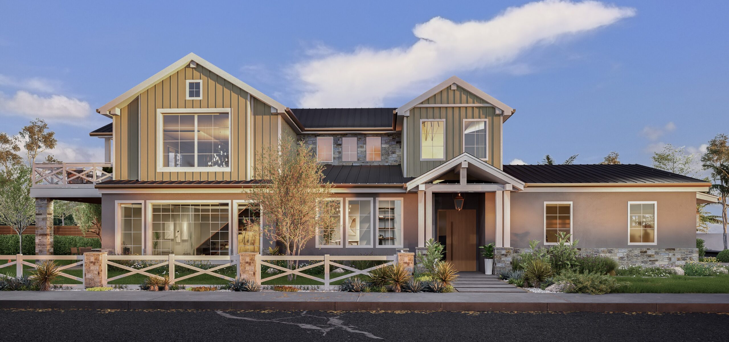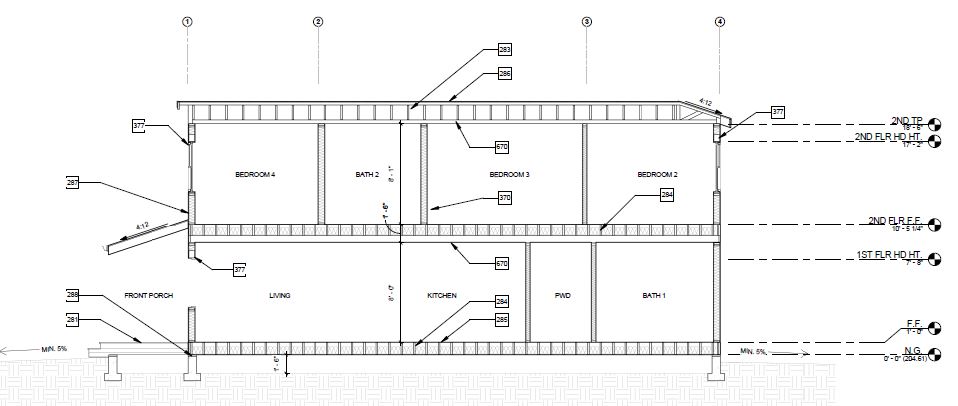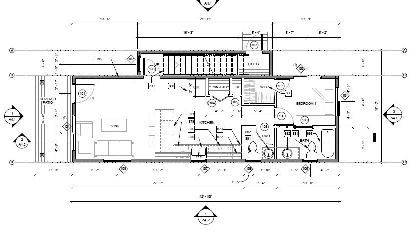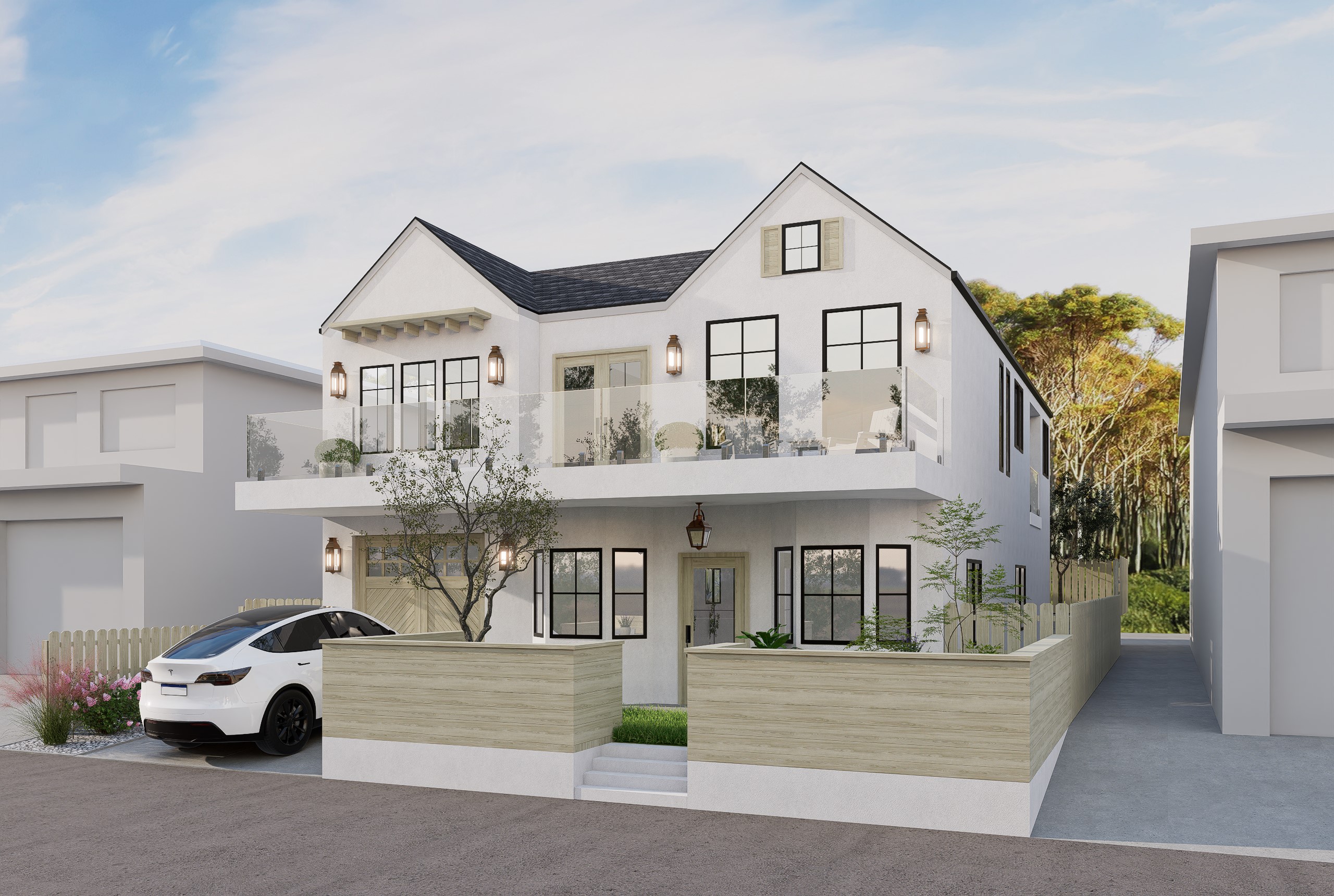 Utilizing the benefits of prefabricated design, this custom modular 1,200 SF four-bedroom accessory dwelling unit (ADU) is actually constructed out of two separate prefab units stacked on top of each other. The constrained lot presented challenges to landing the units, so the prefab manufacturer craned each unit in lifting the units over 100 feet in the air. In the end, the charming ADU compliments the front prmary dwelling nicely.
