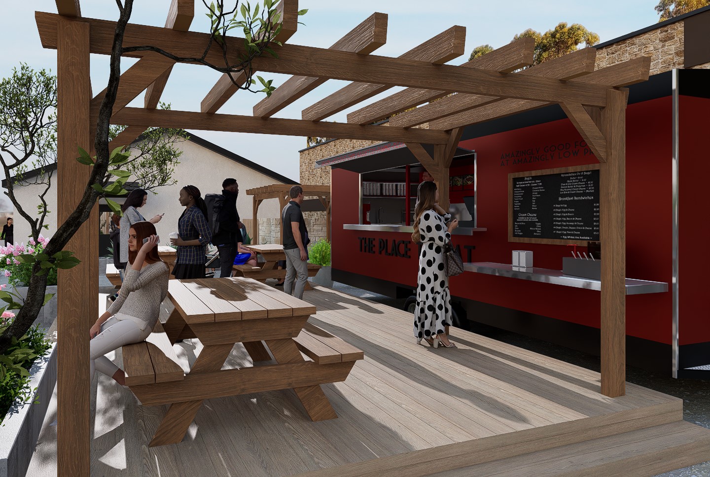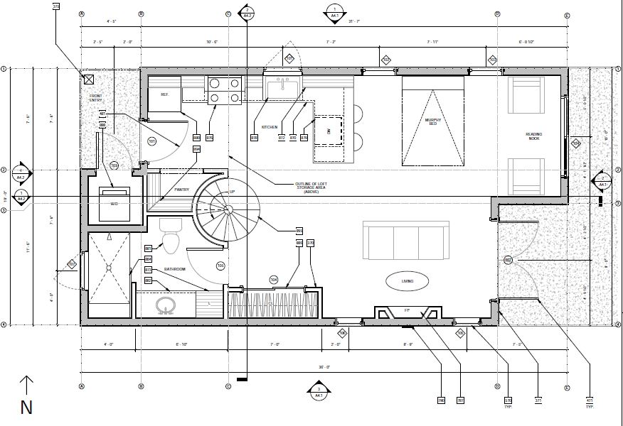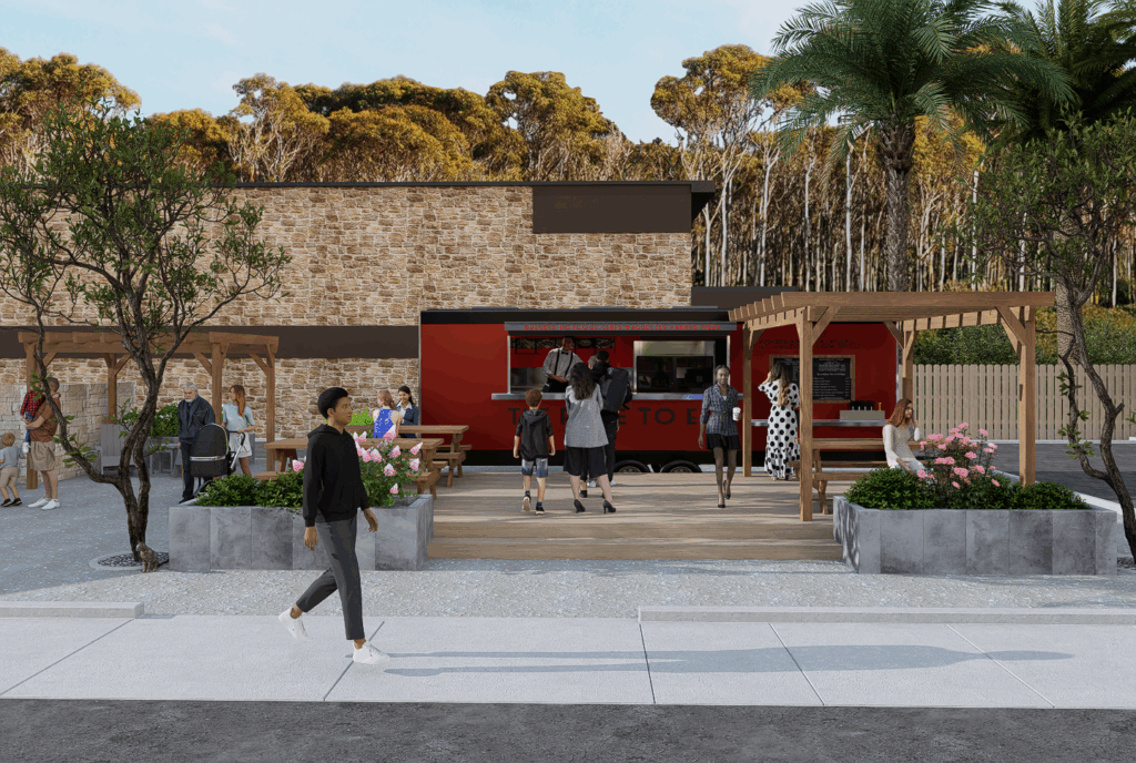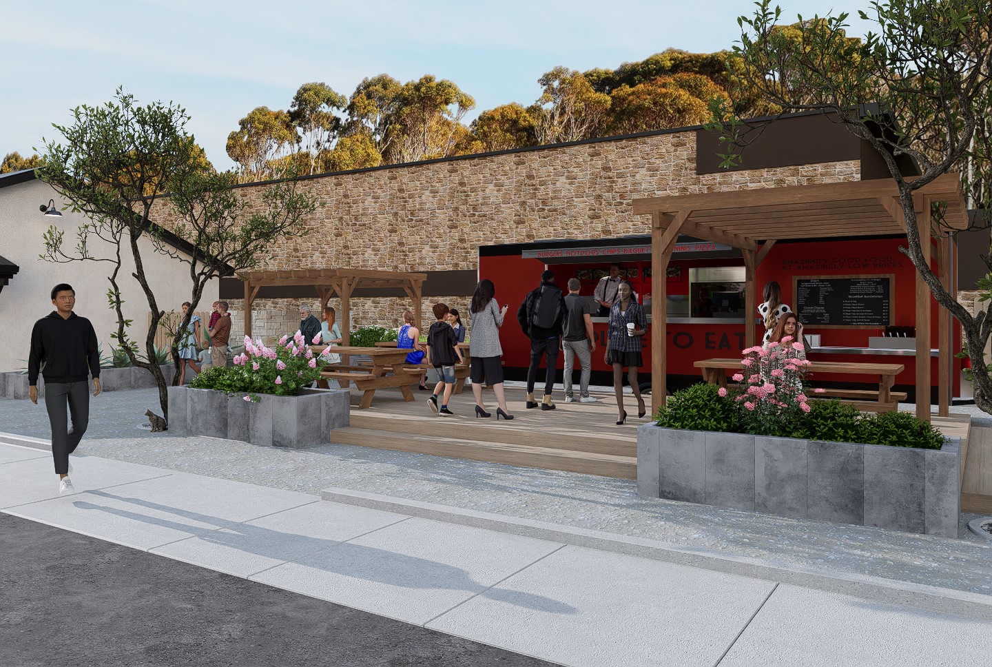Situated in the heart of San Luis Obispo, CA, The Bunker coffee house hosts not only artisan coffee but beautiful art gallery and mural artwork on it's exterior walls. With California's beautiful weather, the client wished to expand the undeveloped area of the rear of the lot with a courtyard, foot trailer and additional parking.